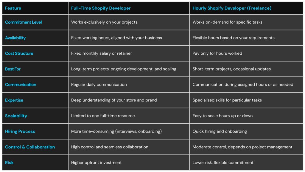 Comparison Table: Full-Time vs Hourly Shopify